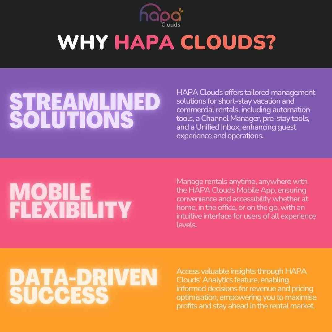 HAPA Clouds is the hospitality industry’s fastest-growing, all-in-one management solution for short-stay rental properties that lets you easily: